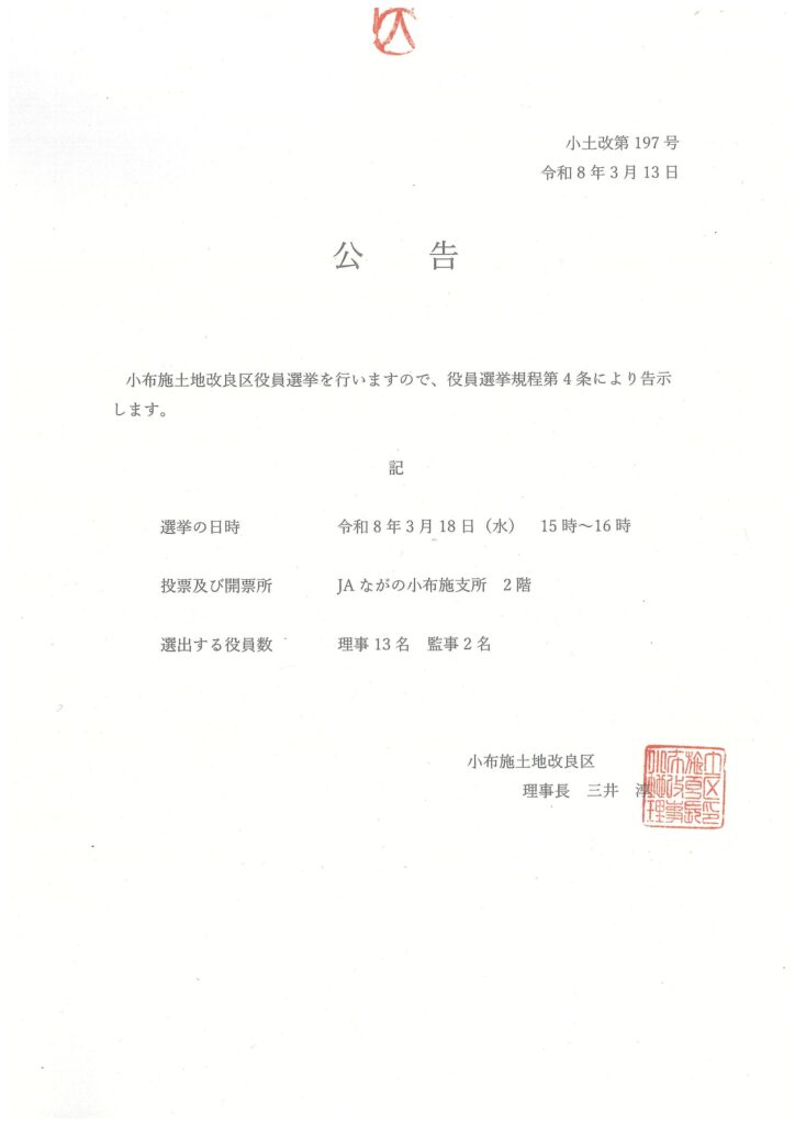 小布施土地改良区役員選挙について告示します